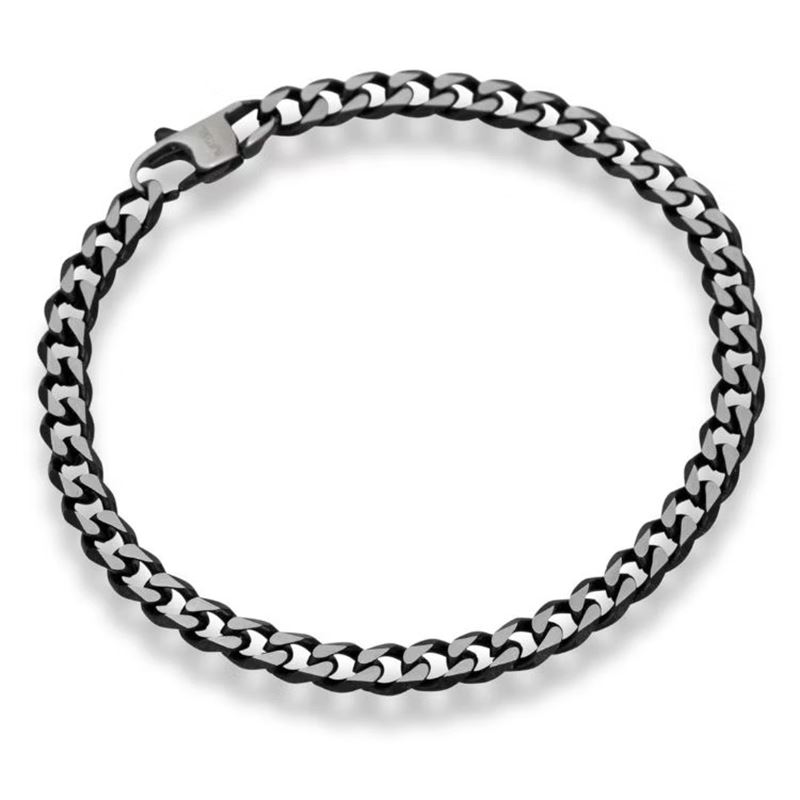 En klassisk pansarlänk i mörkgrått (Gun Metal) rostfritt stål som kombinerar styrka, maskulinitet och edge.