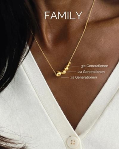 Guldpläterade kulor till ditt Family-halsband. Välj antal kulor som representerar de olika generationerna för att berätta just din familjehistoria, med föräldrar, barn och barnbarn.